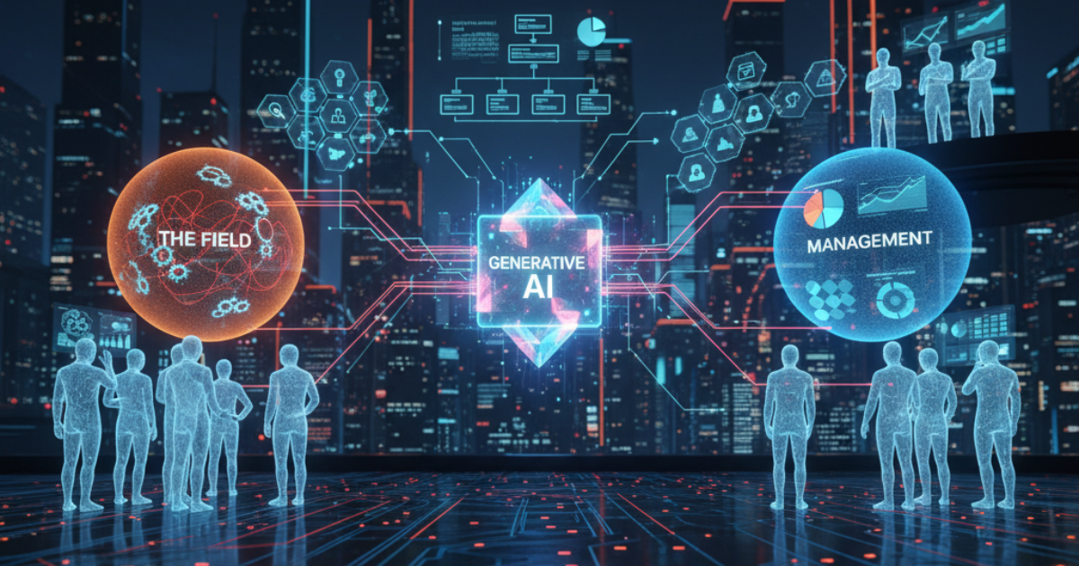 答えは、生成AIにあります。 しかし、それは単に「次の新しいツール」としてではありません。生成AIは、これまでのDXとは根本的に異なる性質を持つテクノロジーです。それは、トップダウンで変革を「強いる」のではなく、ボトムアップで一人ひとりの能力を「解放」し、現場から変革を「起こさせる」触媒となる力を持っています。