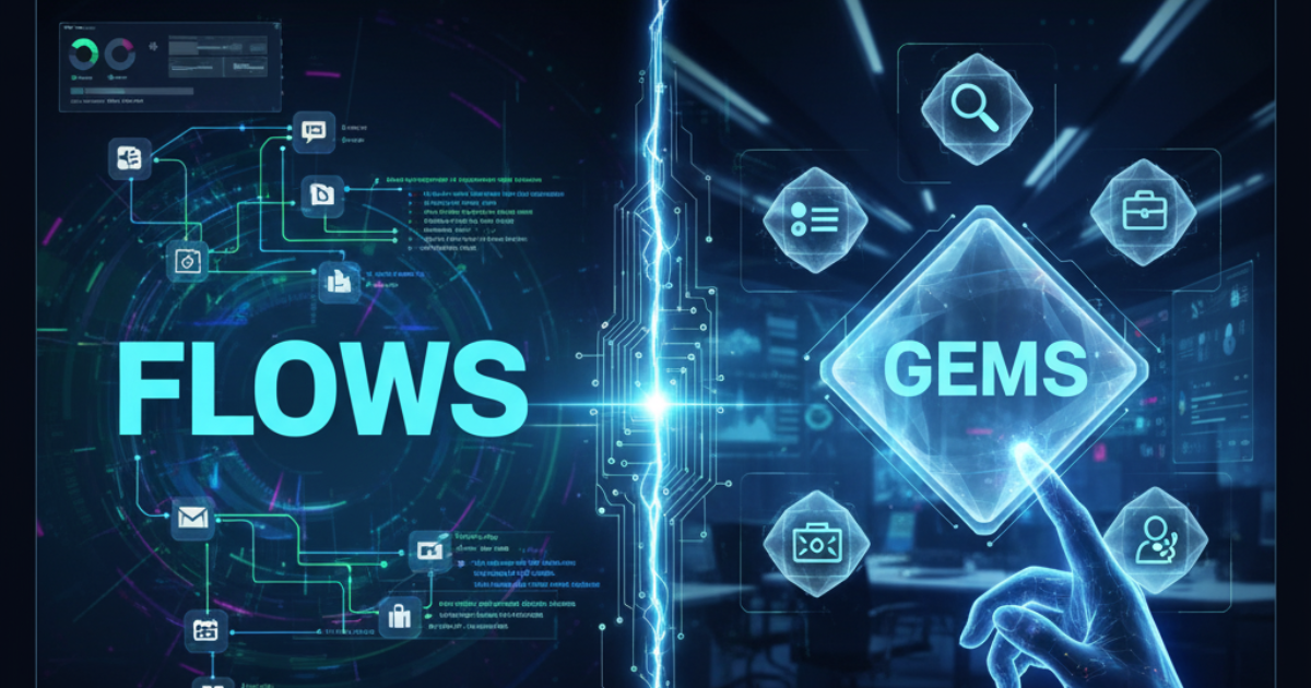 - 戦略の二本柱:「Flows」と「Gems」Googleは、Gemini AIを核に据えた二つの新機能、「Flows」と「Gems」を投入しました。「Flows」は、Gmail、Docs、SheetsといったWorkspaceアプリケーション間で、コーディング不要でインテリジェントなワークフローを構築する自動化レイヤーです。一方、「Gems」は、ユーザーが特定のタスクやビジネスコンテキスト(例:予算、ブランドガイドライン)を学習させることができる、専門化されたAIエージェントです。