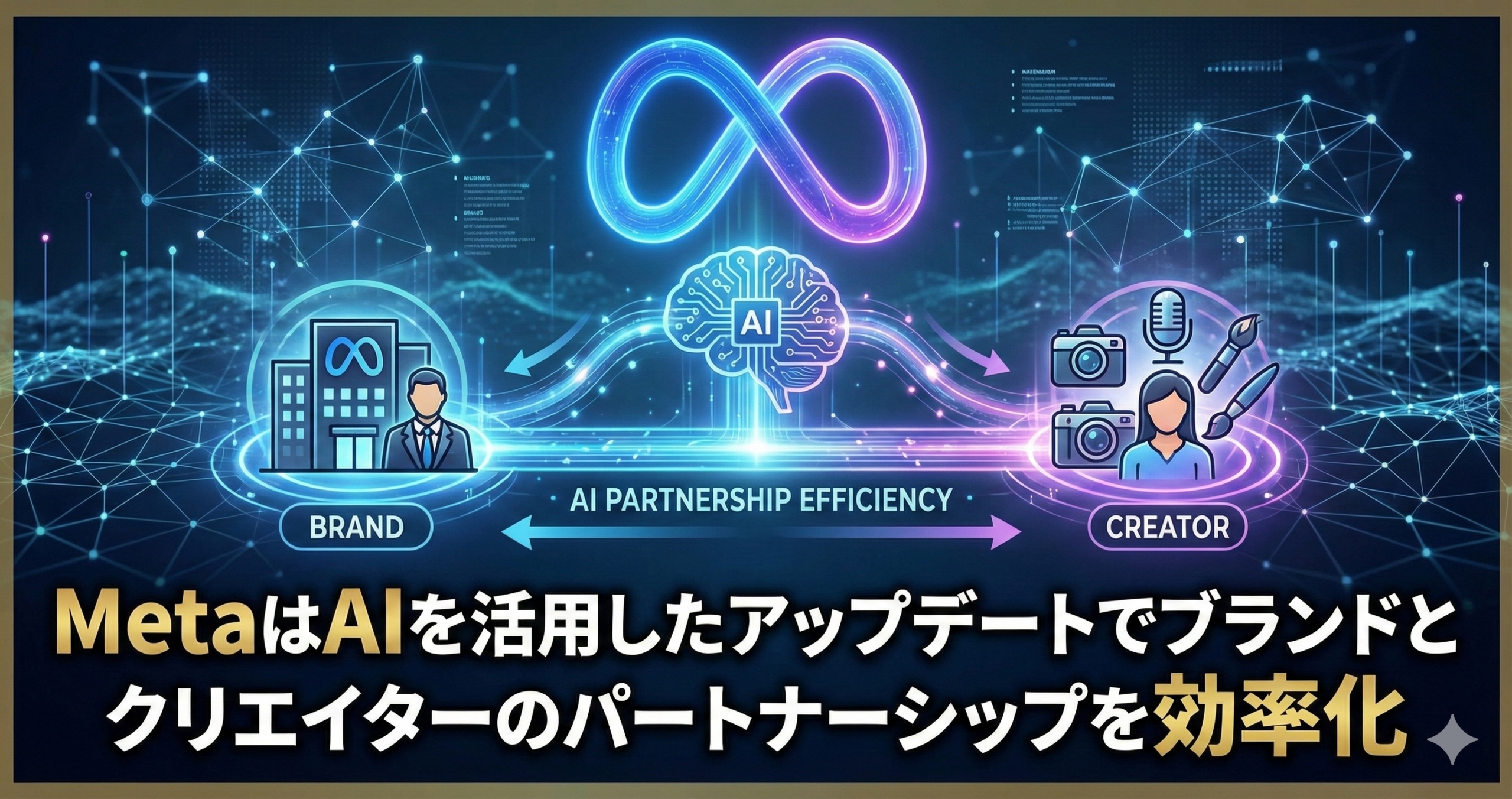 本記事では、最新のアップデート動向を踏まえつつ、 「MetaのAI活用機能が、ブランド×クリエイターのパートナーシップ設計と運用にどう役立つのか」 を、マーケティング担当者の目線で整理します。 個別の操作マニュアルではなく、「どのような考え方でプランニングに組み込むか」に軸を置いて解説していきます。