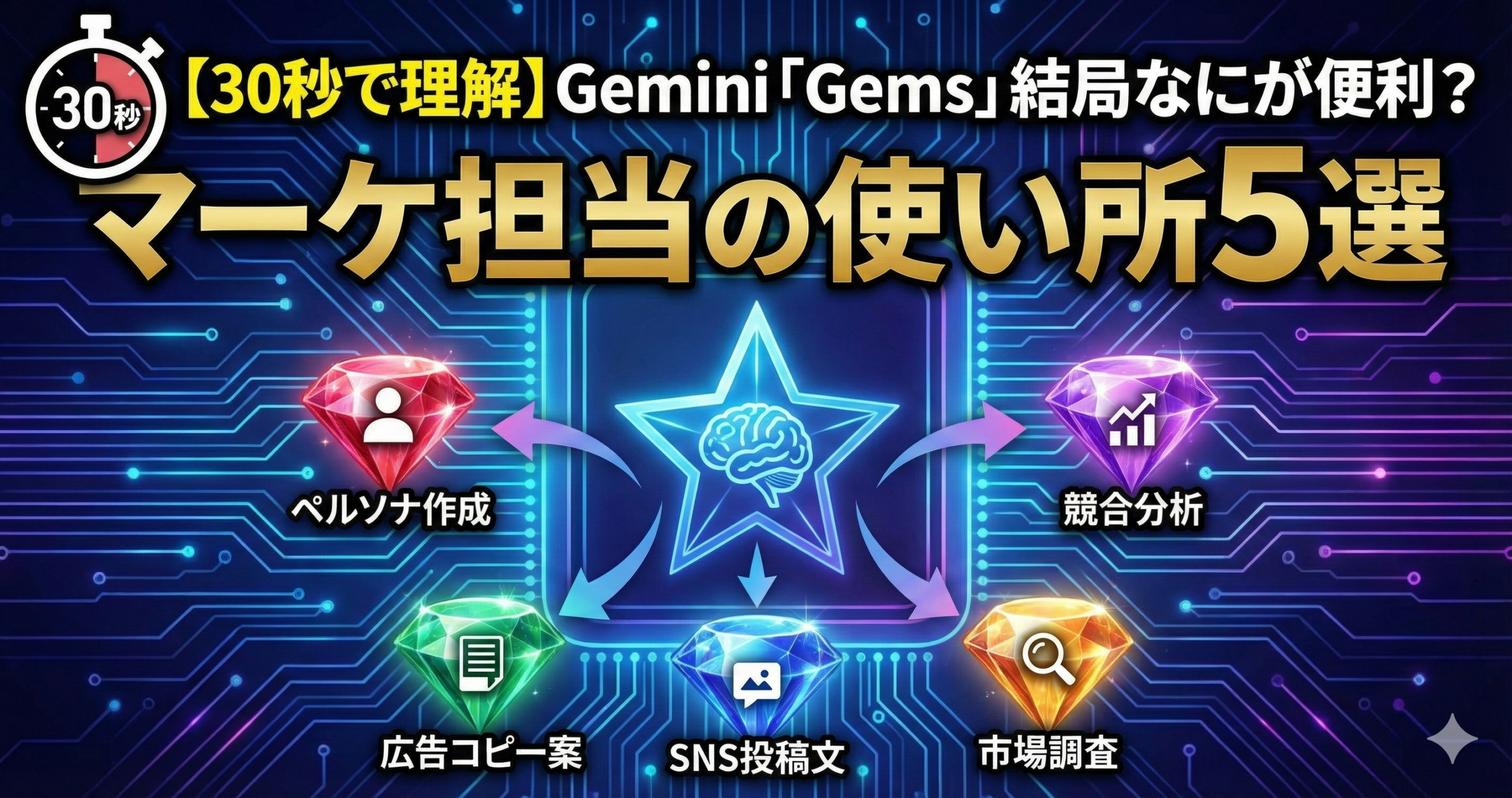 【30秒で理解】Gemini「Gems」結局なにが便利?マーケ担当の使い所5選
