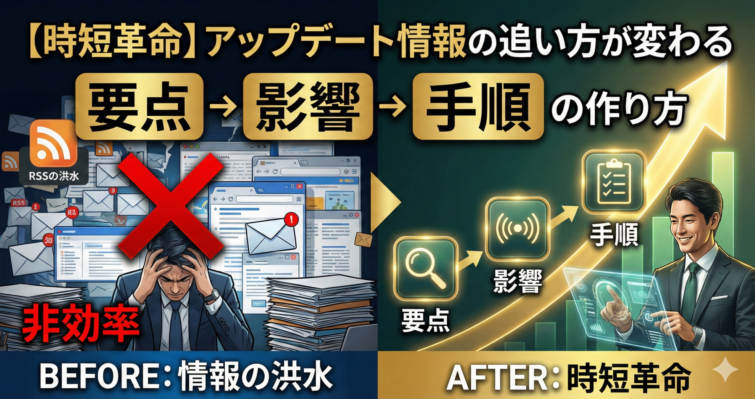 つまり、手順(チェックリスト)まで落ちないと、アップデートは“読んだだけ”で終わりがちです。