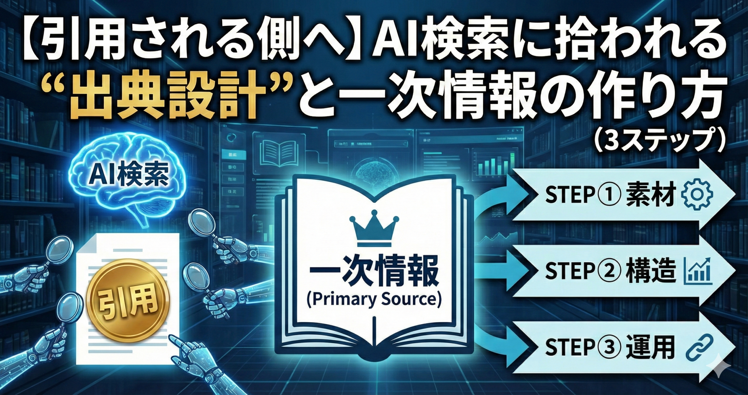 【引用される側へ】AI検索に拾われる“出典設計”と一次情報の作り方(3ステップ)