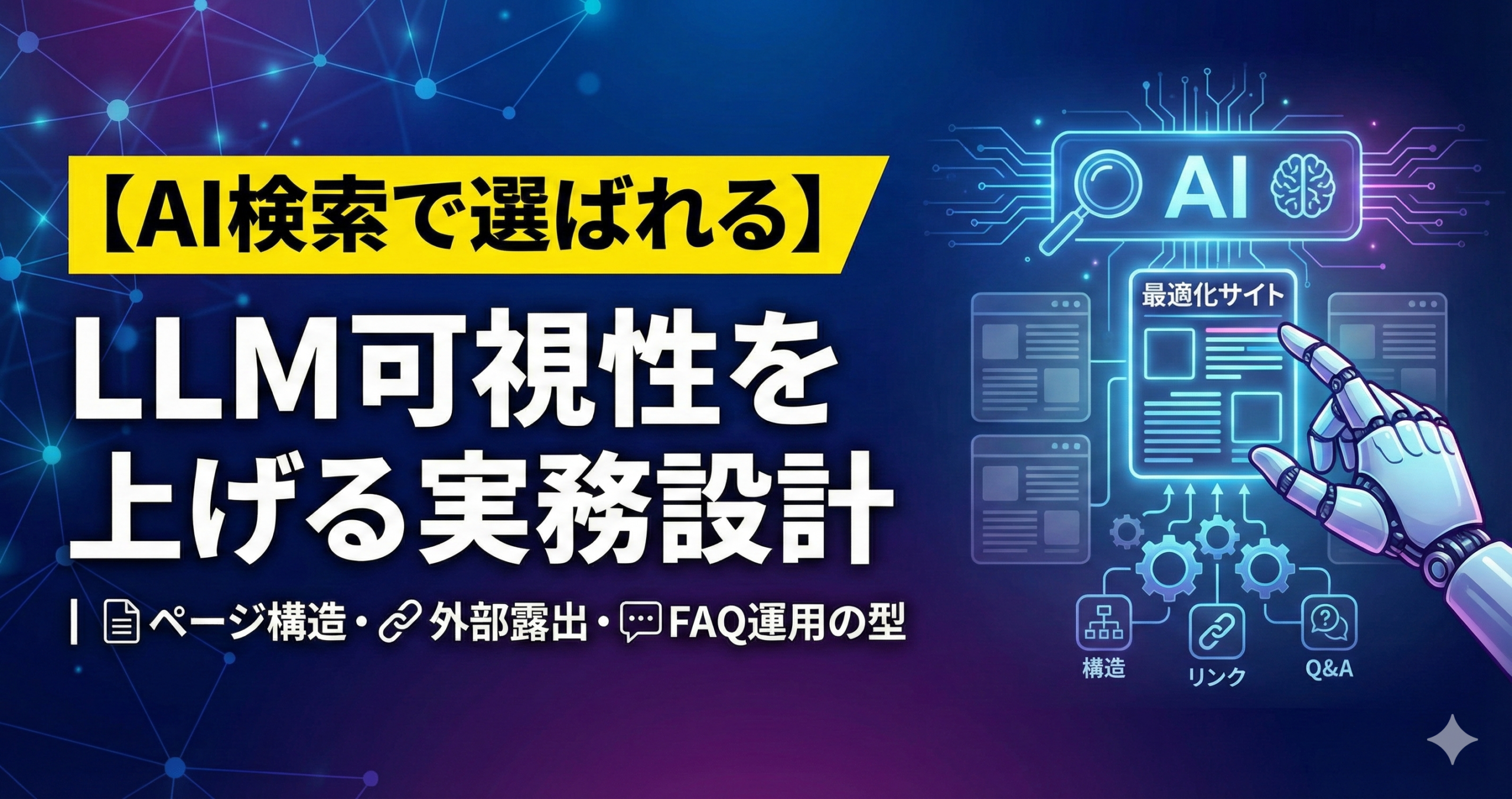 【AI検索で選ばれる】LLM可視性を上げる実務設計|ページ構造・外部露出・FAQ運用の型