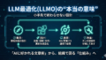| LLMO | LLMが扱いやすい形で知識を整える発想。文章術より“情報供給と更新の設計”に寄りやすい | 知識の“構造化”と“更新” | 用語辞書、同義語管理、変更点の履歴、責任範囲、レビュー観点の固定 |