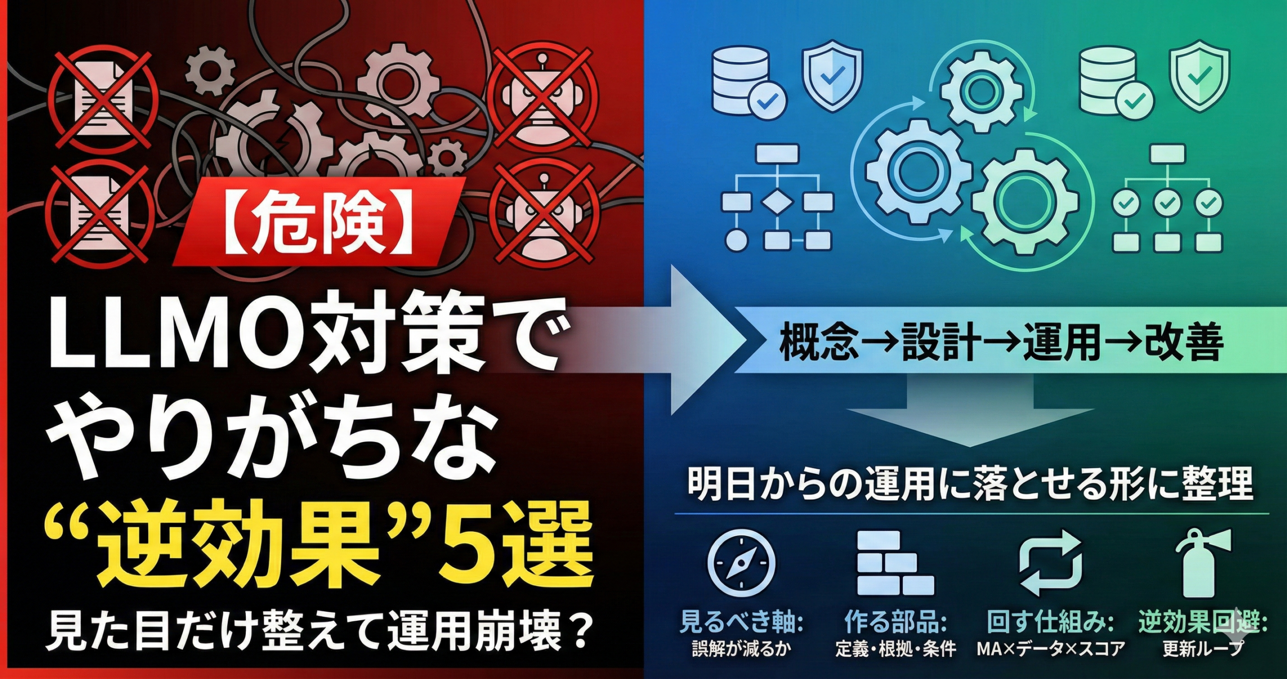 本記事では、逆効果になりやすいパターンを、定義・根拠・条件・例外・FAQ・更新ループの観点で整理し、MAとスコアリングに接続する方法まで落とし込みます。