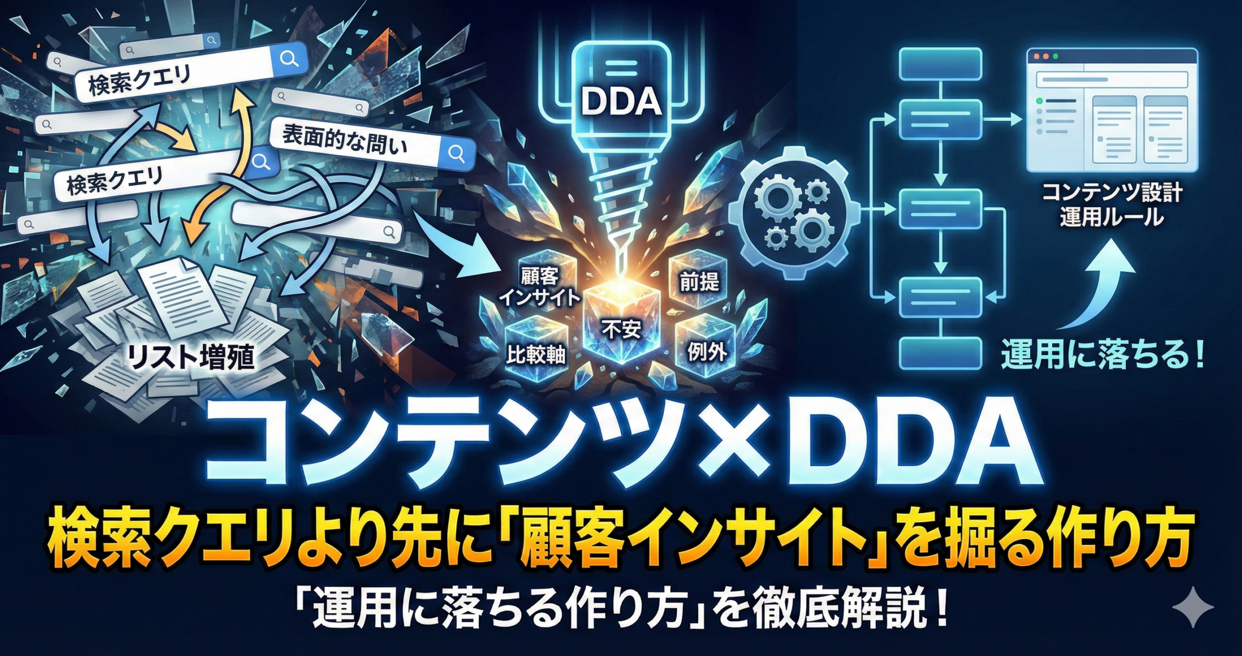 この三つを掛け合わせると、コンテンツ運用は「記事を作る作業」から「根拠を整え、渡し方を標準化する運用」へ寄ります。DDAは、運用の起点を「キーワード」から「顧客の判断プロセス」へ移す役割を担います。