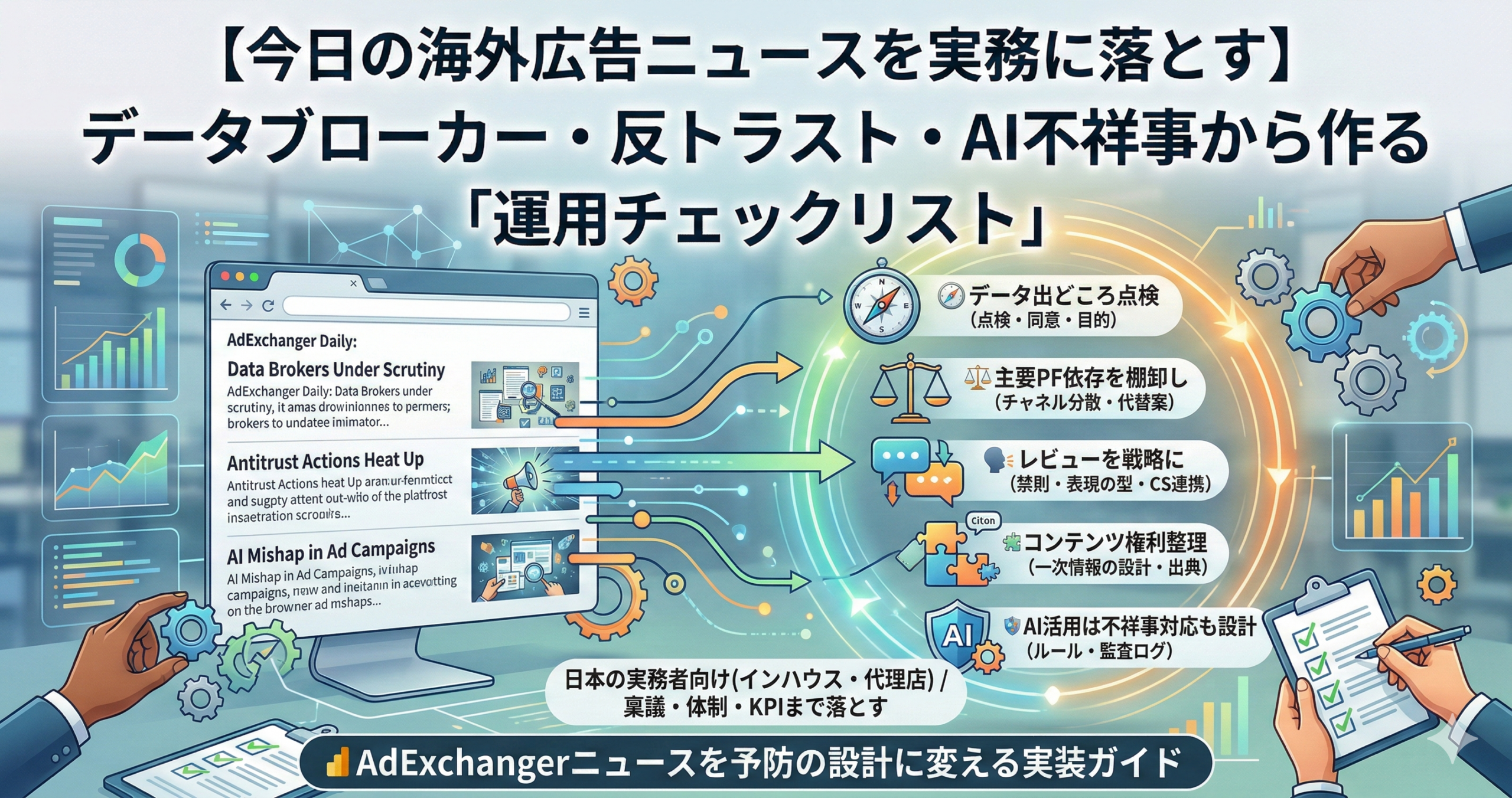 【今日の海外広告ニュースを実務に落とす】データブローカー・反トラスト・AI不祥事から作る「運用チェックリスト」