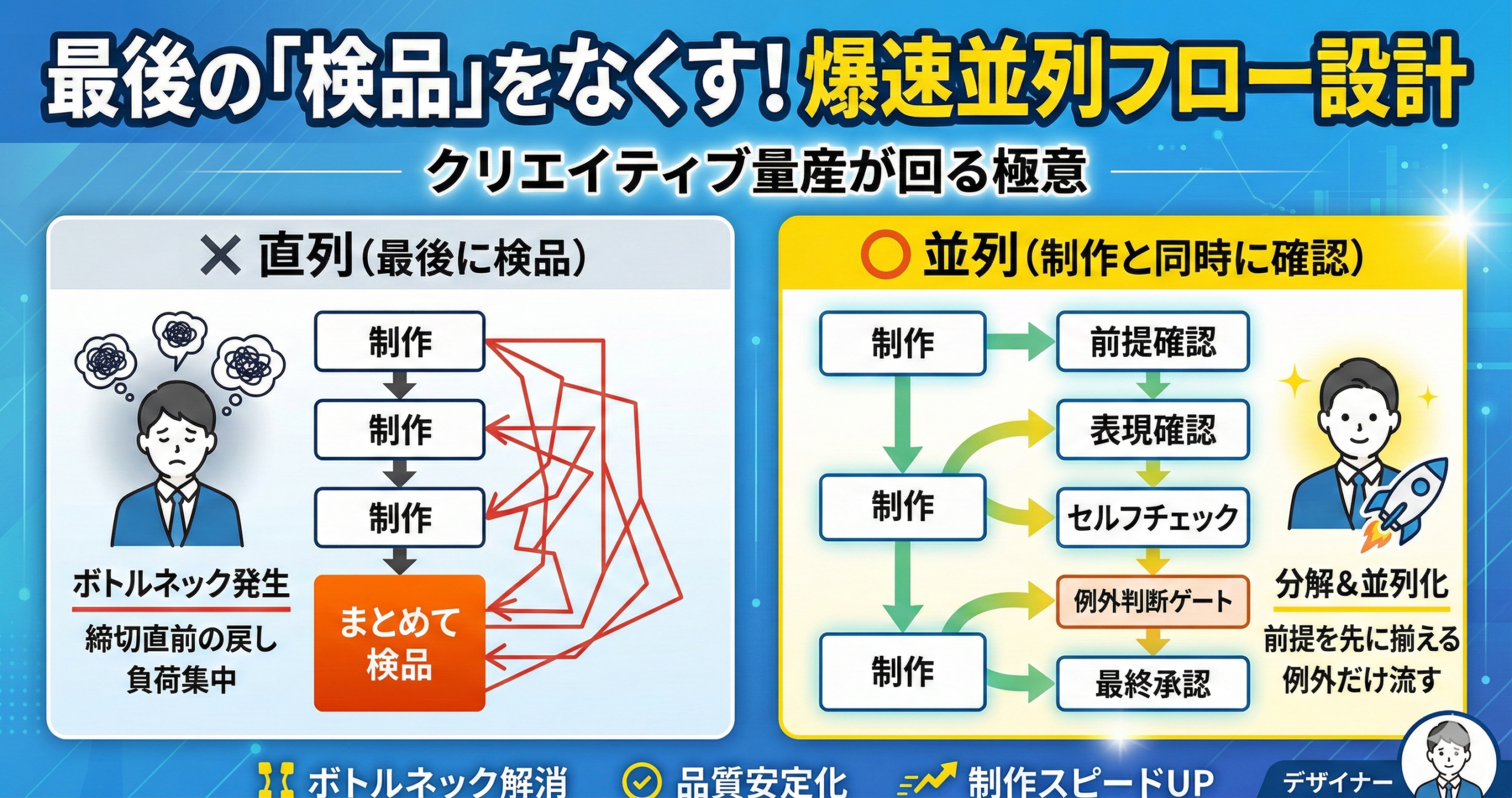クリエイティブ量産が回るチームは“検品”を工程にしていない:並列化するフロー設計