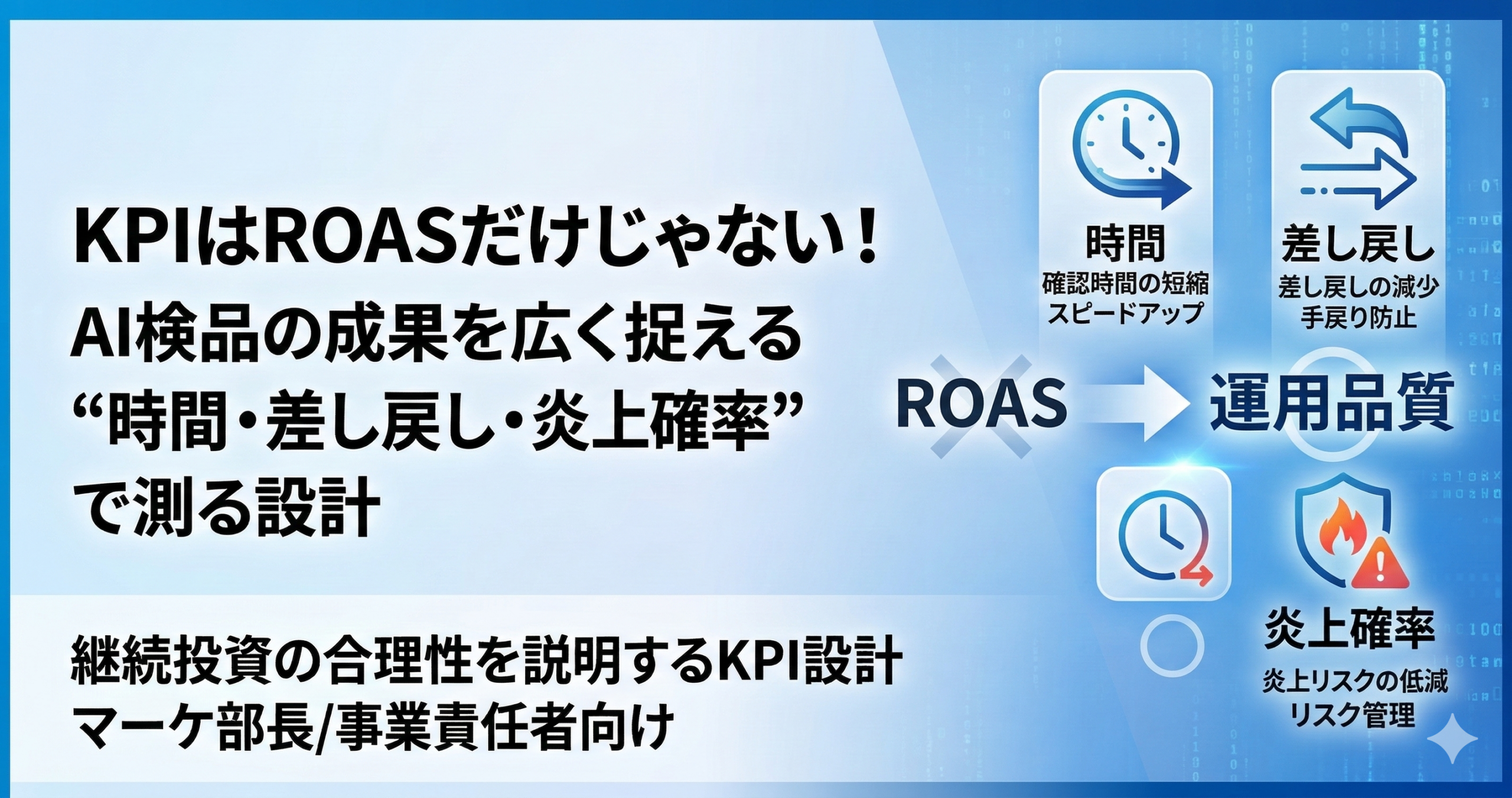 KPIはROASだけじゃない:AI検品の成果を“時間・差し戻し・炎上確率”で測る設計