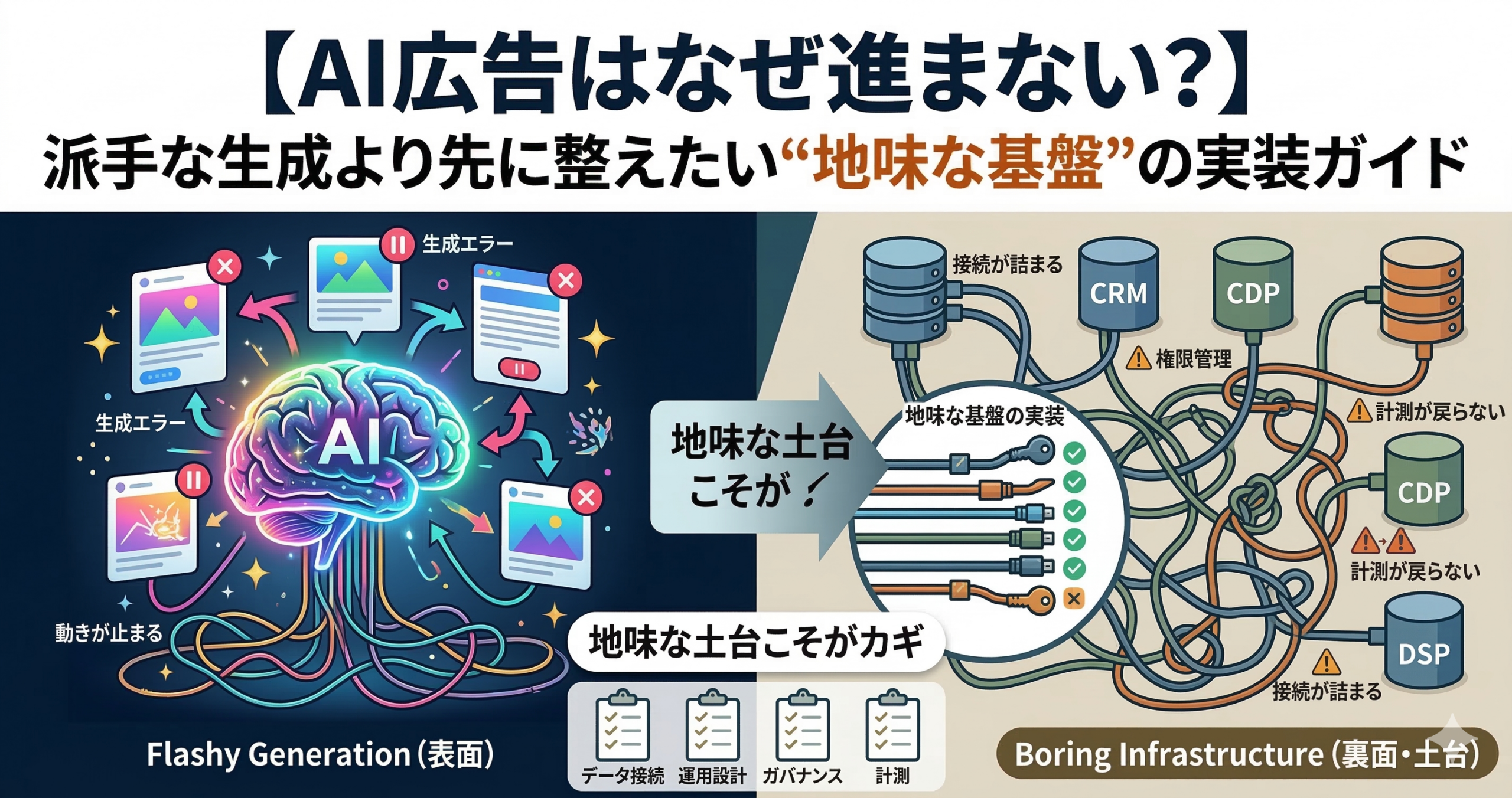 【AI広告はなぜ進まない?】派手な生成より先に整えたい“地味な基盤”の実装ガイド