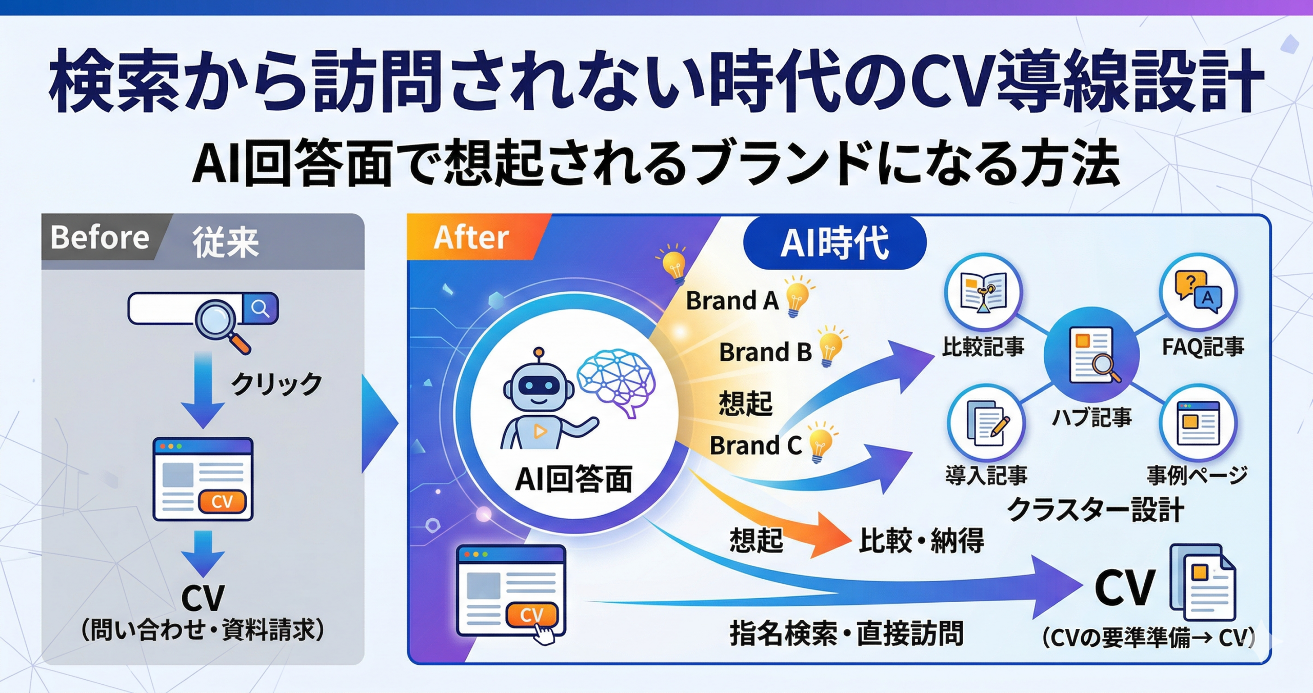AI時代のCV導線は、訪問だけでなく想起・比較・再訪まで含めて設計しやすくなります。