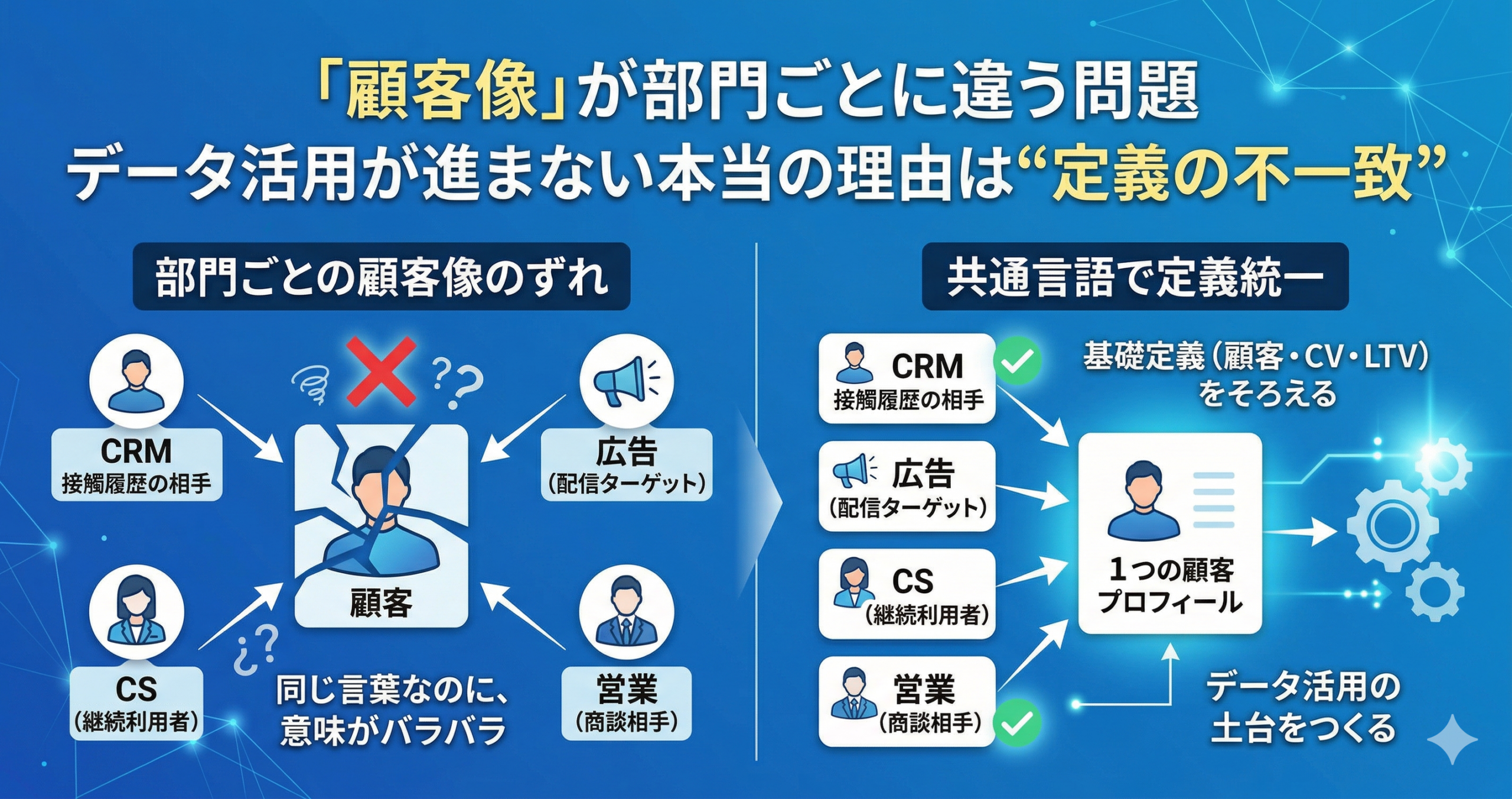 部門ごとの顧客像のずれは、施策分断の大きな原因になりやすいです。