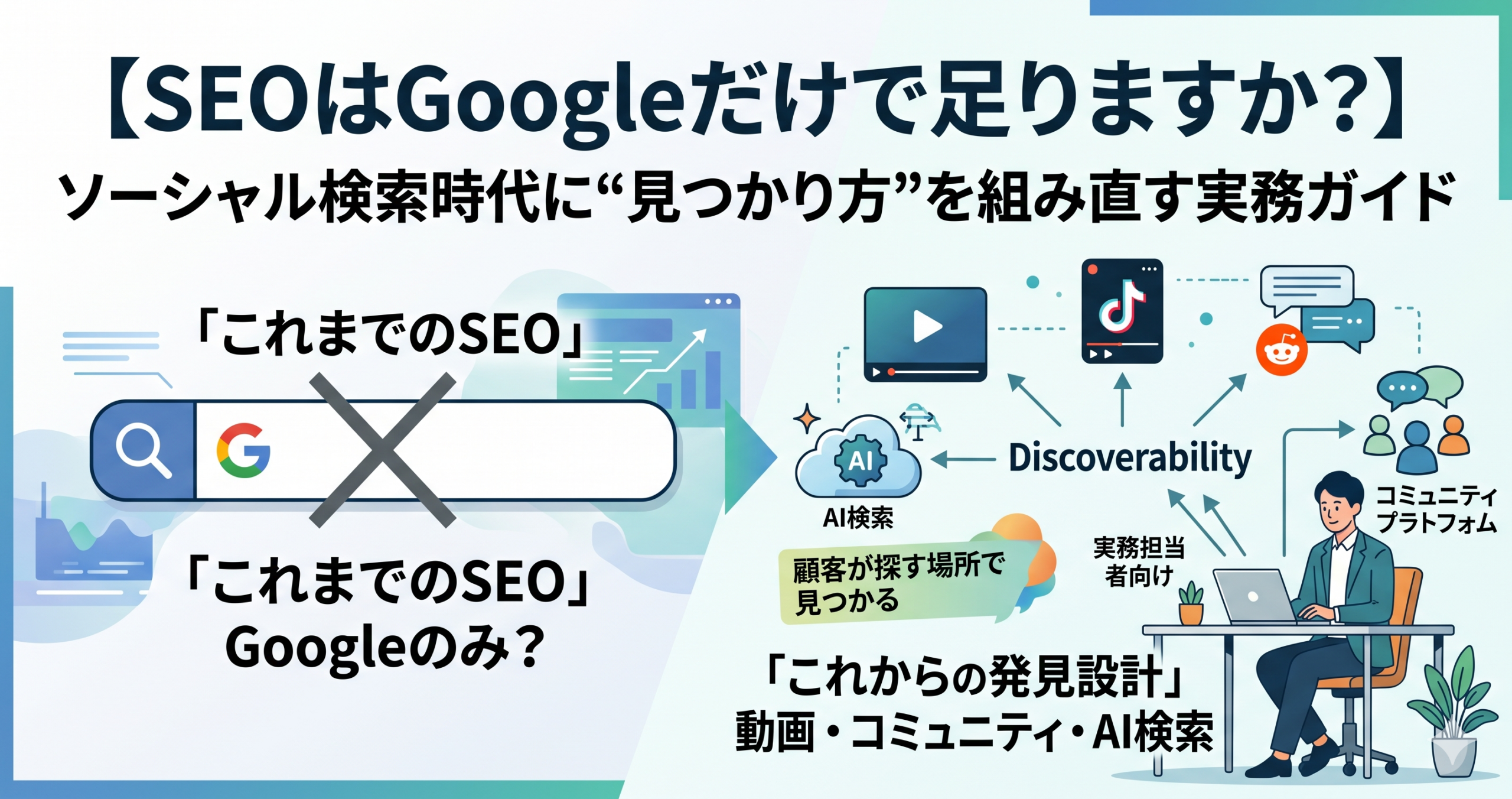 先に結論を書くと、いま押さえるべき論点は「SEOを捨てること」ではなく、「顧客が探す面を広く見て、発見設計を再構成すること」です。