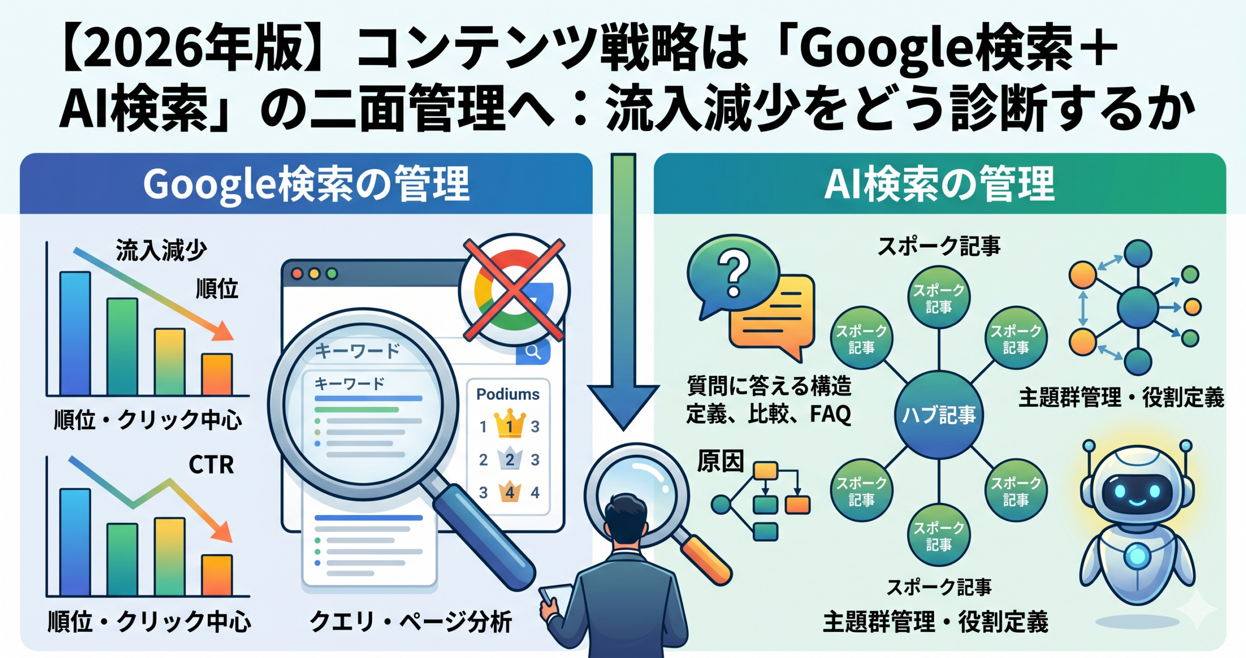 2026年のコンテンツ戦略は「Google検索+AI検索」の二面管理へ:流入減少をどう診断するか