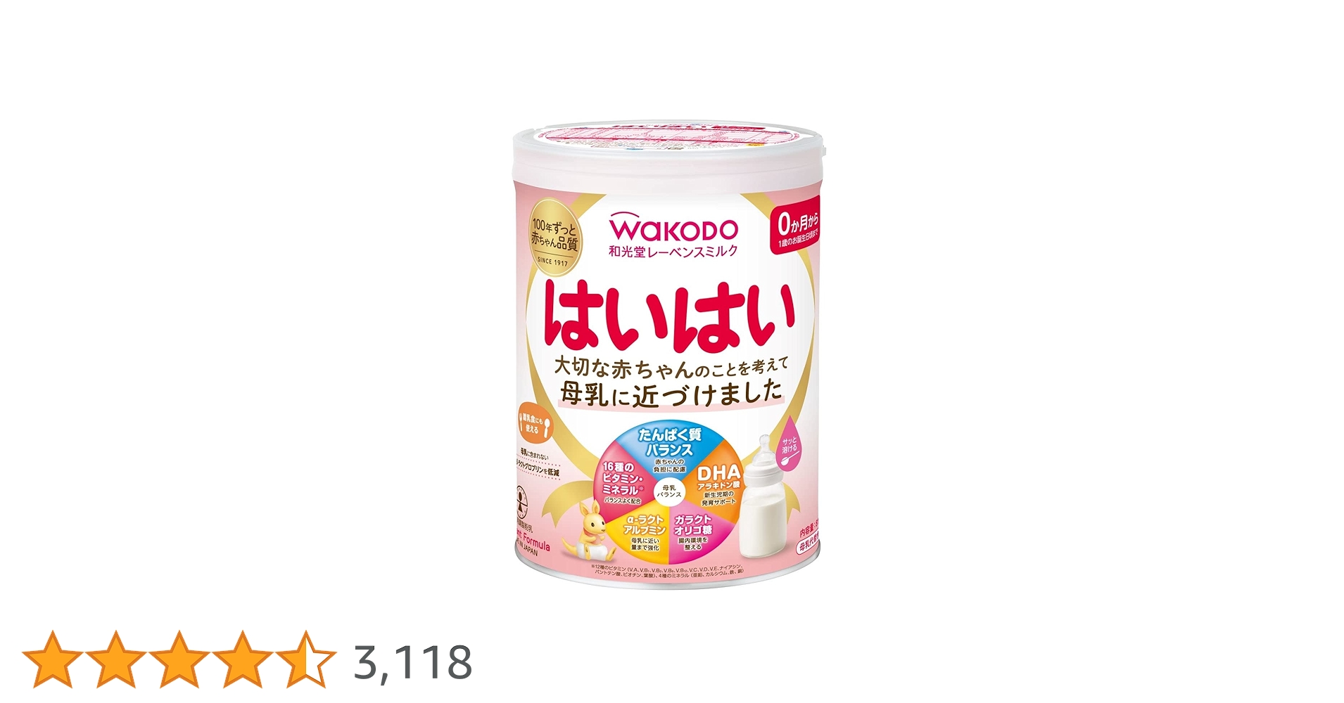 - ラクトフェリン配合: 赤ちゃんの免疫機能と腸内環境をサポート。