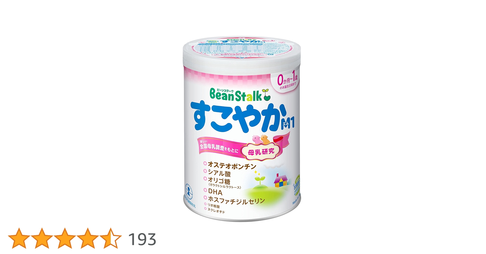 「雪印ビーンスターク すこやかM1」は、最新の母乳研究に基づき、タンパク質や脂肪の量・質を調整している点が特徴です。DHAやオリゴ糖に加え、母乳に含まれるシアル酸など、多様な成分を取り入れ、より母乳に近い栄養バランスを目指しています。缶の蓋の裏にすりきり板が付いているなど、使いやすさにも配慮されており、多くのママ・パパから支持を集めています。2025年6月時点のランキングでも上位にランクインしており、信頼性の高さが伺えます。