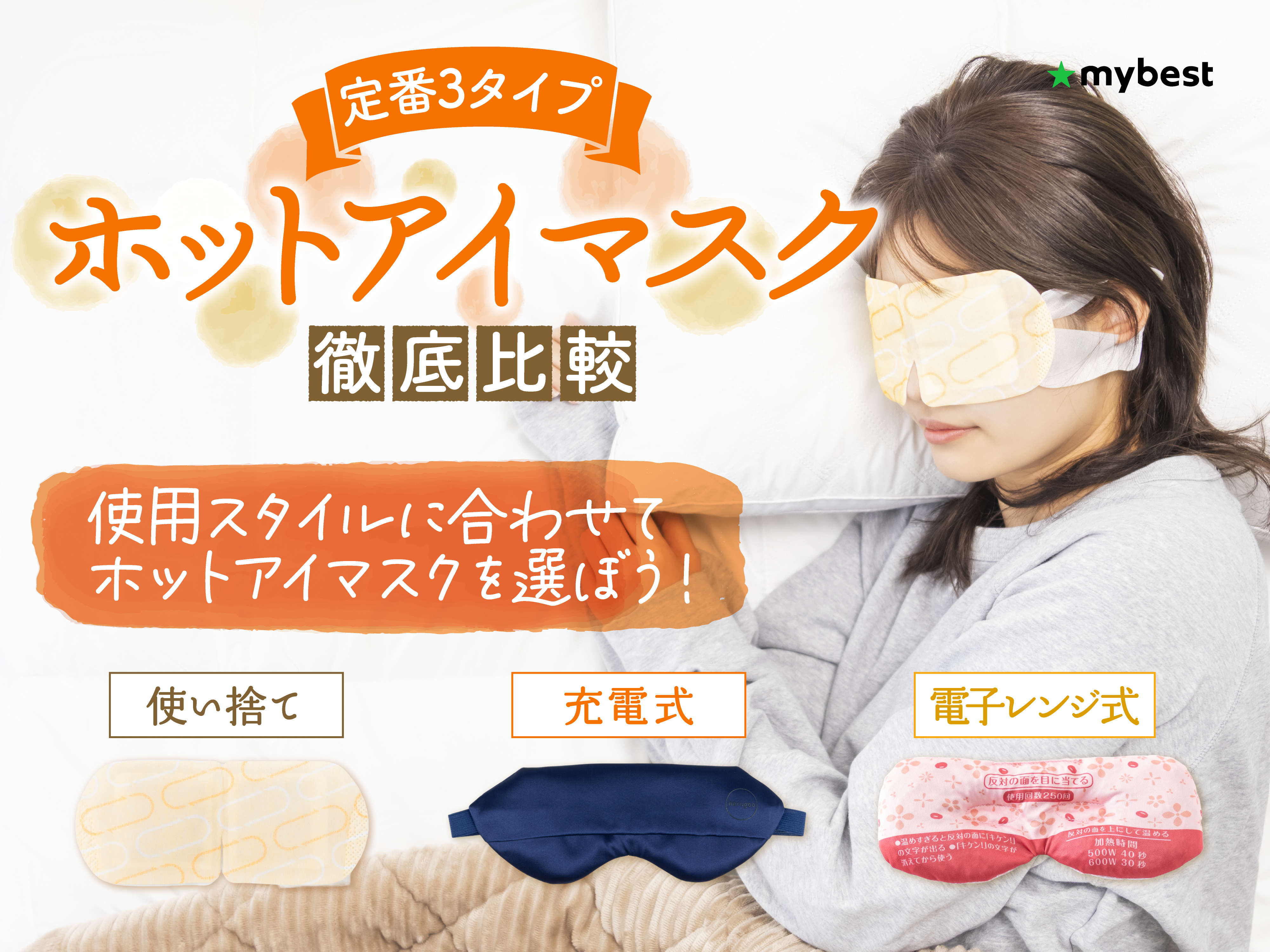 ホットアイマスクには、大きく分けて3つのタイプがあります。それぞれの特徴と、どんな人におすすめかを見ていきましょう。