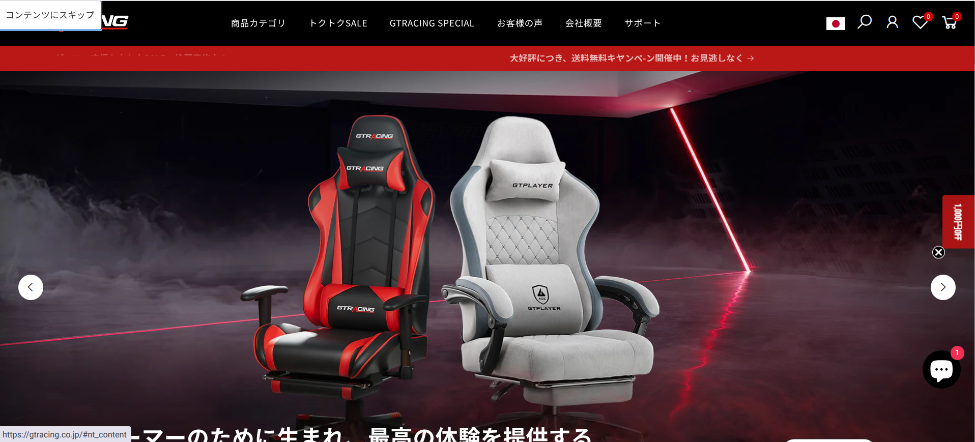 GTRACING(ジーティーレーシング)公式サイトは、長時間のゲームやデスクワークを快適にサポートする高品質なゲーミングチェアを販売しています。人間工学に基づいた設計とスタイリッシュなデザインで、プレイヤーが最高のパフォーマンスを発揮できる環境を提供しています。リクライニング機能やBluetoothスピーカー付きモデルなど、多彩なラインアップを展開しています。公式サイト(https://gtracing.jp/)では、限定モデルやお得なキャンペーンもご覧いただけます。