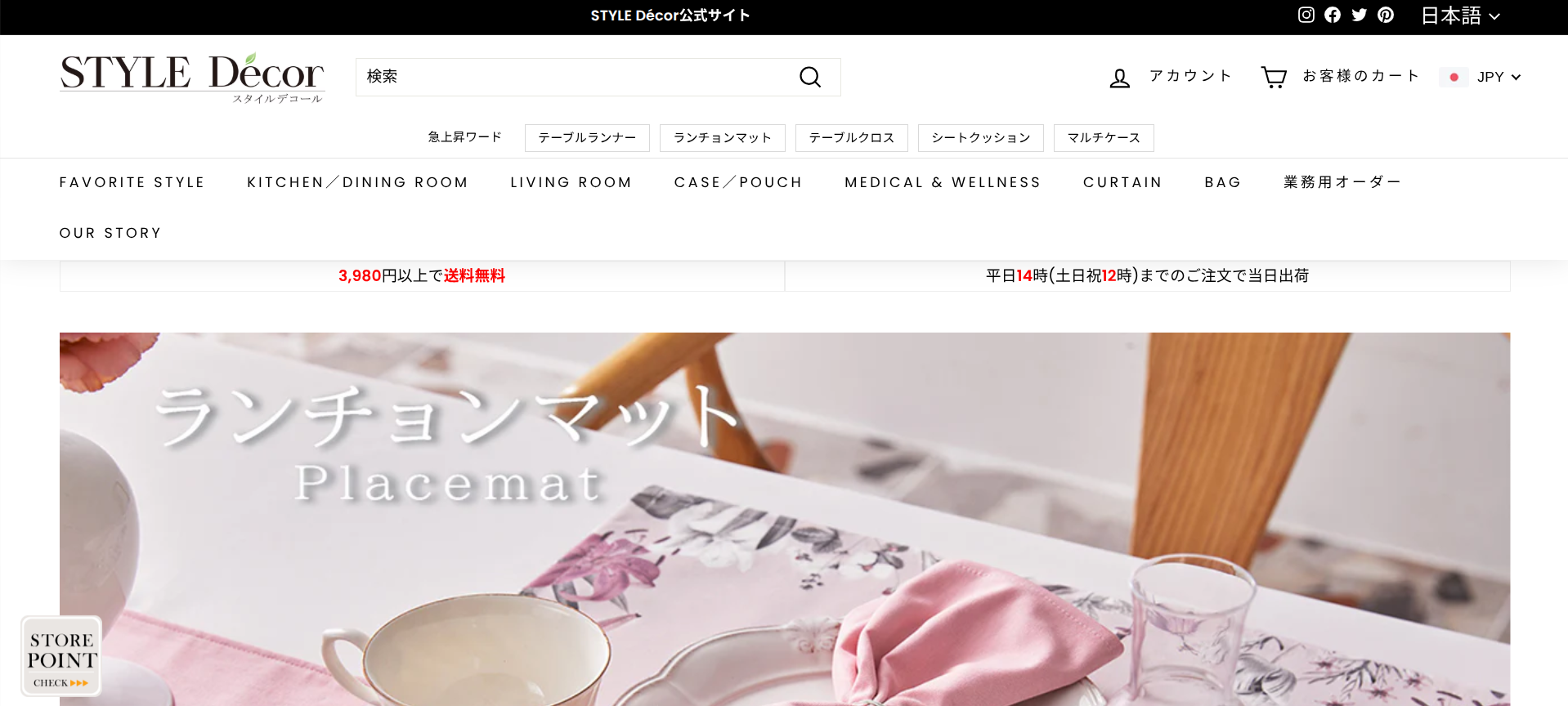 STYLE Décor(スタイルデコール)公式オンラインストアは、上質なライフスタイルを彩るテーブルウェアやファブリックアイテムを取り揃えています。