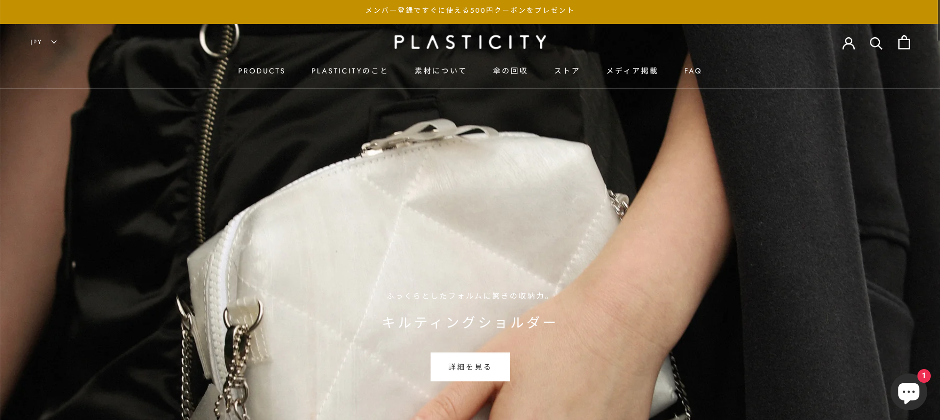 PLASTICITYは、「10年後になくなるべきブランド」という強いコンセプトを掲げるアップサイクルブランドです。毎年大量に廃棄されるビニール傘を回収し、独自の素材GLASS RAINに生まれ変わらせたバッグや小物を展開されています。環境問題に意識が高く、シンプルでスタイリッシュなデザインを好む持続可能性(サステナブル)を重視されるお客様層から支持を集めています。傘の持つ防水性や耐久性を活かし、機能性とデザイン性を両立させた製品が代表的です。こちらのECサイトが、その独自のサービスや価値観をオンラインで提供するために、どのようなShopifyアプリを導入し、どのような戦略と具体的な活用方法を展開されているのかを、わかりやすく解説いたします。(plasticity.co.jp/)