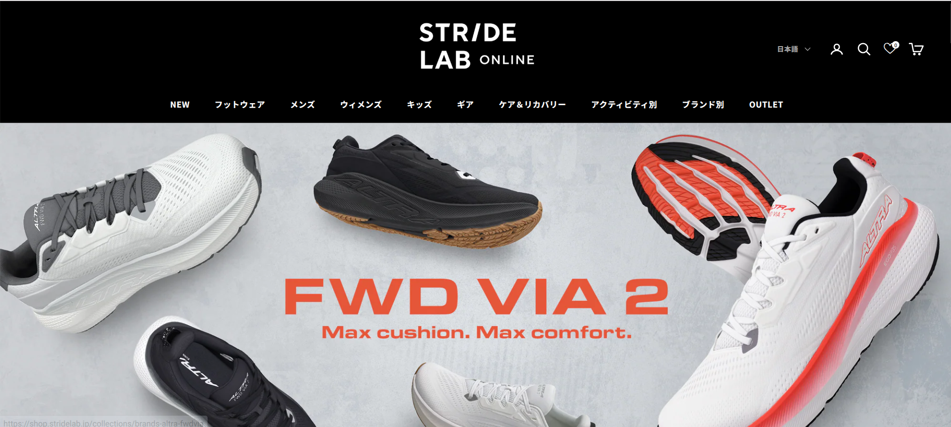 STRIDE LABは、「すべての一歩を健康に。」を目的として掲げる、ランニング・ウォーキング・ハイキング専門のショップです。代表的な商品には、足の健康と自然な動きを追求したミニマルシューズ ALTRA(アルトラ)や、軽量で革新的なアウトドアギア、専門的なフットケア用品などがございます。ランニングによる怪我を減らし、長くアクティビティを楽しみたいと願う健康意識の高い層や、トレイルランナー、ハイカーを主なお客様としています。このような専門的な知見と商品をオンラインでも提供するため、ECサイトの改善に注力しております。ECサイトの開発者や運営を担当される皆様に役立つように、STRIDE LABが実際に導入しているShopifyアプリの構成と活用方法について、一つずつ分かりやすく解説いたします。(https://shop.stridelab.jp/\)