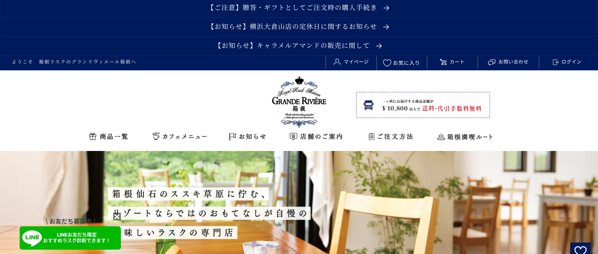 グランリヴィエール箱根は、「すべての人に楽しんでもらいたい」という温かいおもてなしの心と、商品に対する絶対的な自信をブランドの核としています。厳選された素材と独自の製法で生み出されるラスクは、贈る人にも贈られる人にも喜びを届けたいという想いが込められた代表的な商品です。このECサイトは、ただ商品を販売するだけでなく、お客様が次に箱根を訪れる際にも思い出してもらえるような、心に残るショッピング体験を提供し続けています。