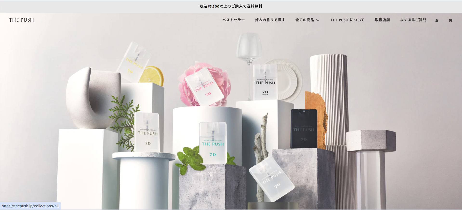 THE PUSHは、手の清浄がニューノーマルとなった現代において、「ストレスなくスマートに持ち歩く」ことをコンセプトに誕生したフレグランスハンドスプレーのブランドです。薄くてスタイリッシュなカード型ボトルが特徴で、エタノール70%配合の高い殺菌力と、香水よりも気軽に楽しめるイージーフレグランスとしての側面を併せ持っています。定番のミントに加え、クロモジなどシーンに合わせて選べる香りのラインナップが揃っており、安全性とデザイン性を両立させている点が主要顧客層である感度の高い若者やファミリー層に支持されています。製品は日常の必需品としてだけでなく、ギフトとしても人気を集めています。当記事では、ECサイトの開発者や運営者の方々へ向けて、THE PUSHのストアで実際に導入されているShopifyアプリを分かりやすく解説いたします。()