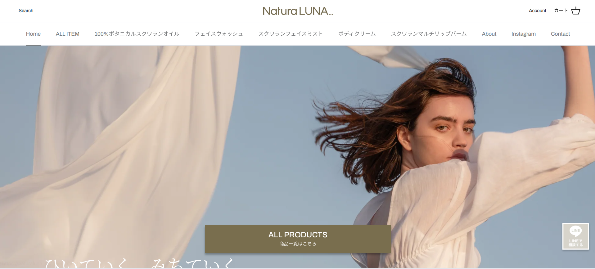 NaturaLUNA…は、タレントのベッキーさんがプロデュースを手がけるスキンケアブランドの公式オンラインショップです。このブランドは「自然の力で、肌本来の力を引き出す」をミッションに掲げ、海洋資源保護に配慮した天然由来の成分や、赤ちゃんと一緒に使える添加物不使用の製品開発にこだわっています。主力商品は植物由来のスクワランオイルなどで、特に肌の乾燥や保湿に悩む女性、そして親子で安心して使える商品を探しているお客様に支持されています。本記事では、ECサイトの開発者や運営者の皆様へ、NaturaLUNA…ストアで実際に導入されているShopifyアプリを分かりやすく解説します。(https://naturaluna.jp/)
